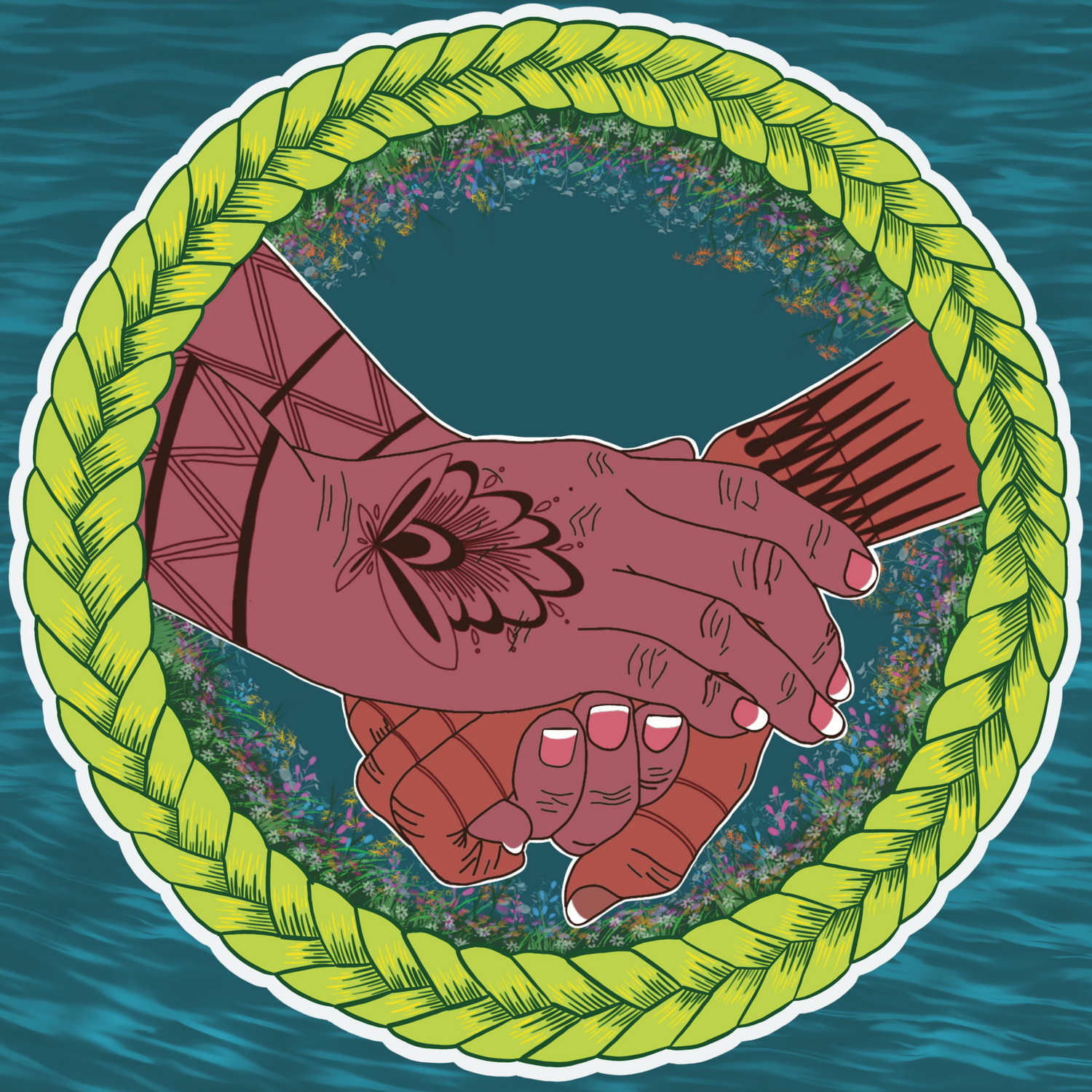 Original design which depicts Anishinaabe florals representing the interconnectedness of creation