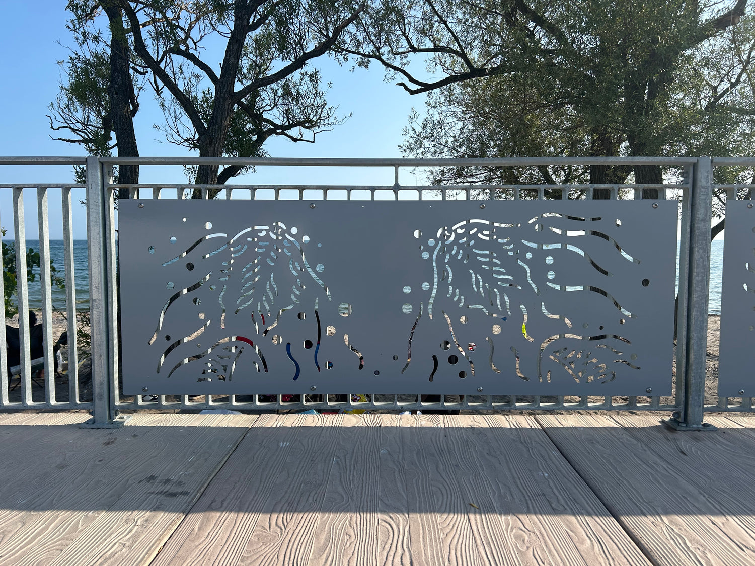 Digital illustration turned laser cut panels which will be permanently displayed along the Pickering beachfront along their new boardwalk.