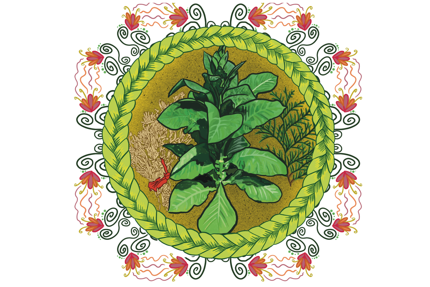 Variation of multiple original designs which depict 4 sacred medicines used in smudging