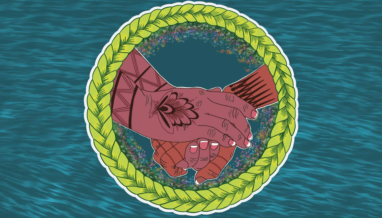 Original design which depicts Anishinaabe florals representing the interconnectedness of creation