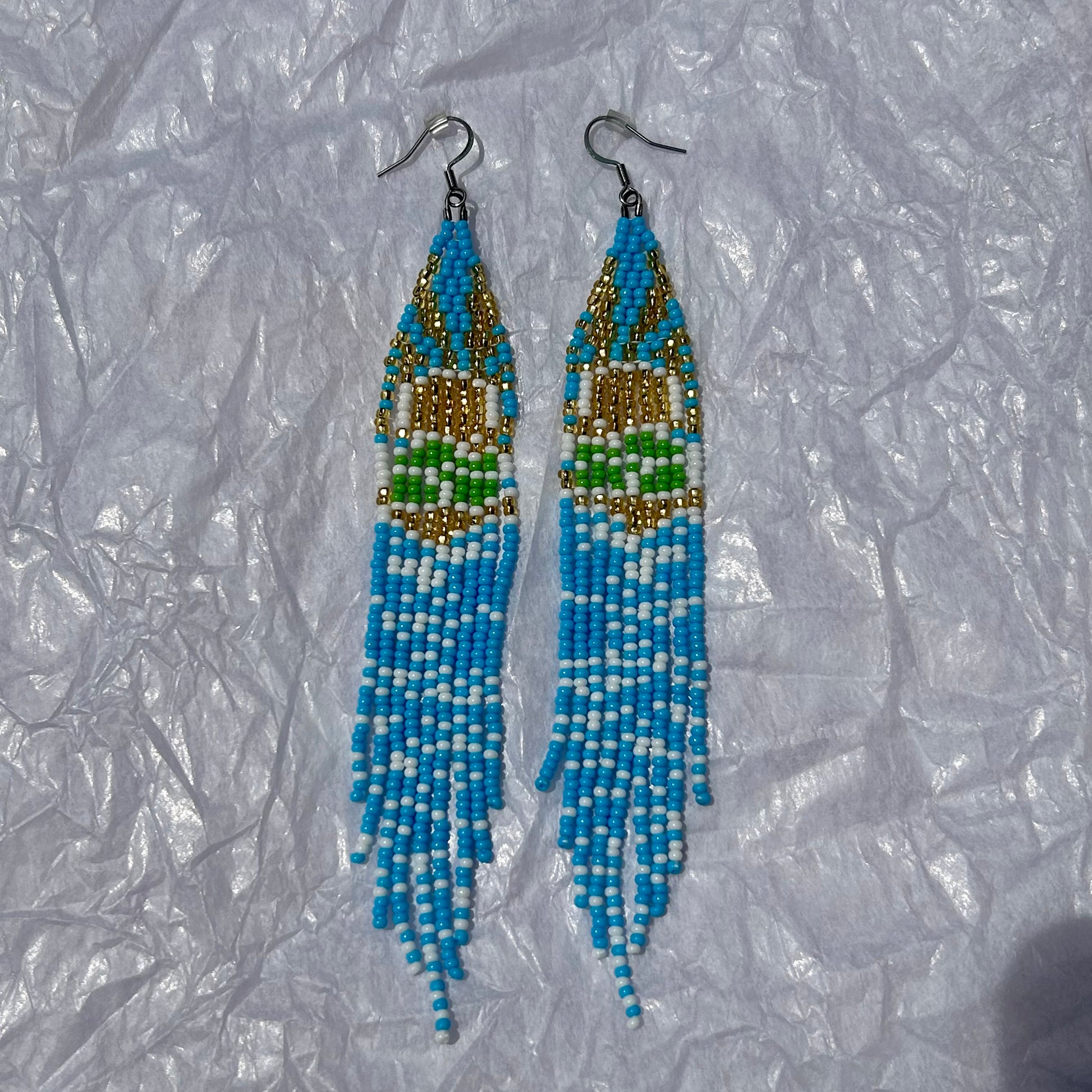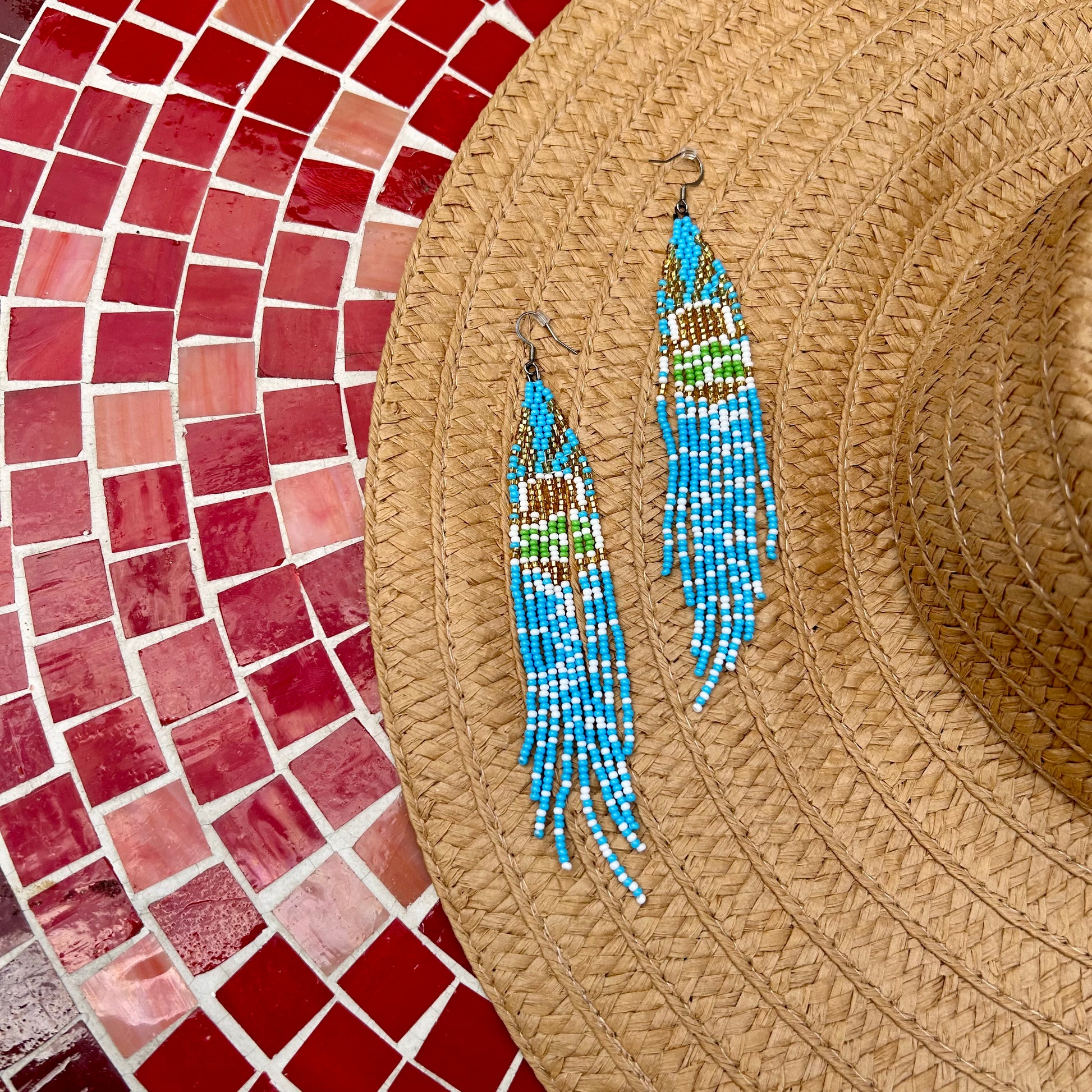 6 inch fringe earrings on stainless steel hooks inspired by the sunrise over the mountains